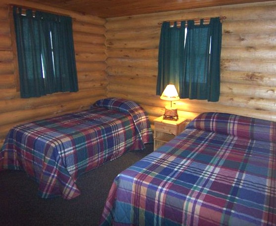 This cabin features a large kitchen with 1 full size refrigerator, there are 4 double beds and 10 twin beds, all bedding is included with sheets, comforters and pillows. Kitchen has oven, microwave, drip coffee maker, toaster, pots, pans, cups, glasses, utensils, crock pot, dish soap, hand soap, kitchen towels, cleaning rag/sponge and has a beautiful covered porch over looking the river and charcoal grill outside.