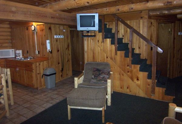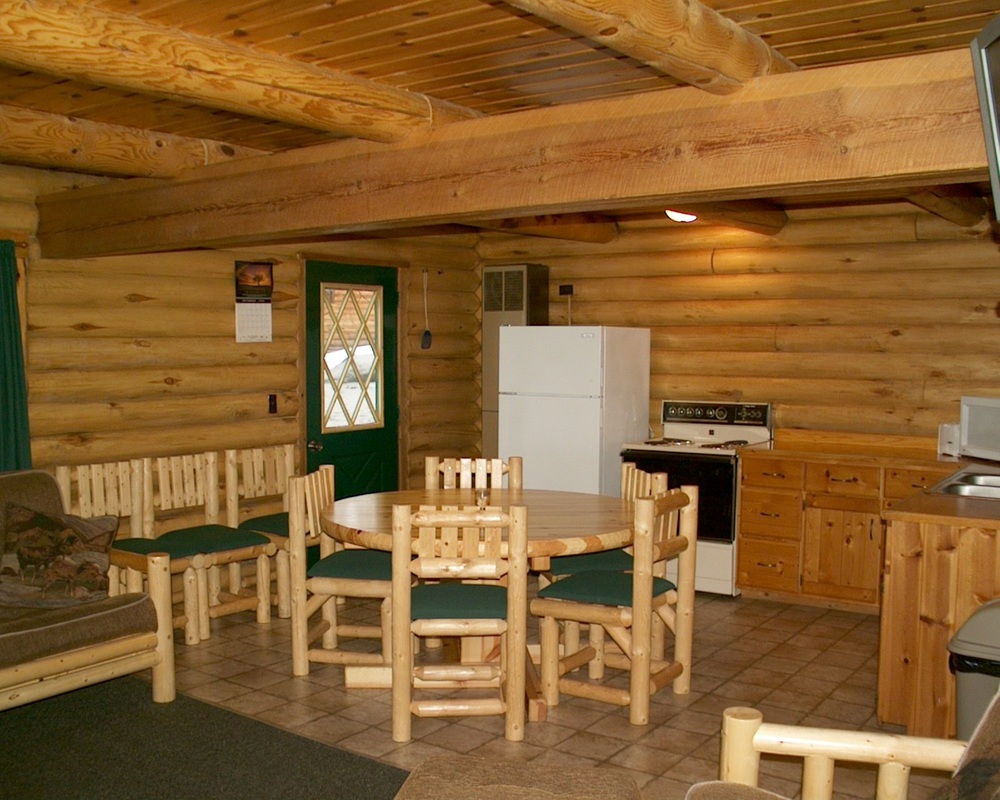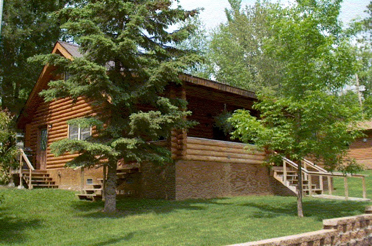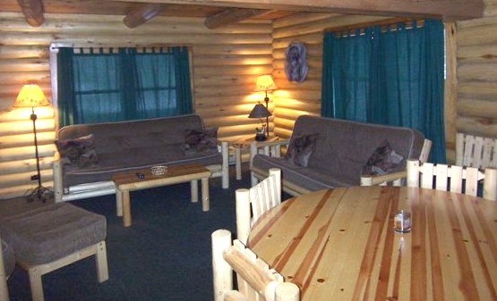 This beautiful native Aspen log cabin has 5 bedrooms, upper loft, 2 full baths (1 up, 1 down), living room & river-view covered deck. 4 double beds, 10 twins.